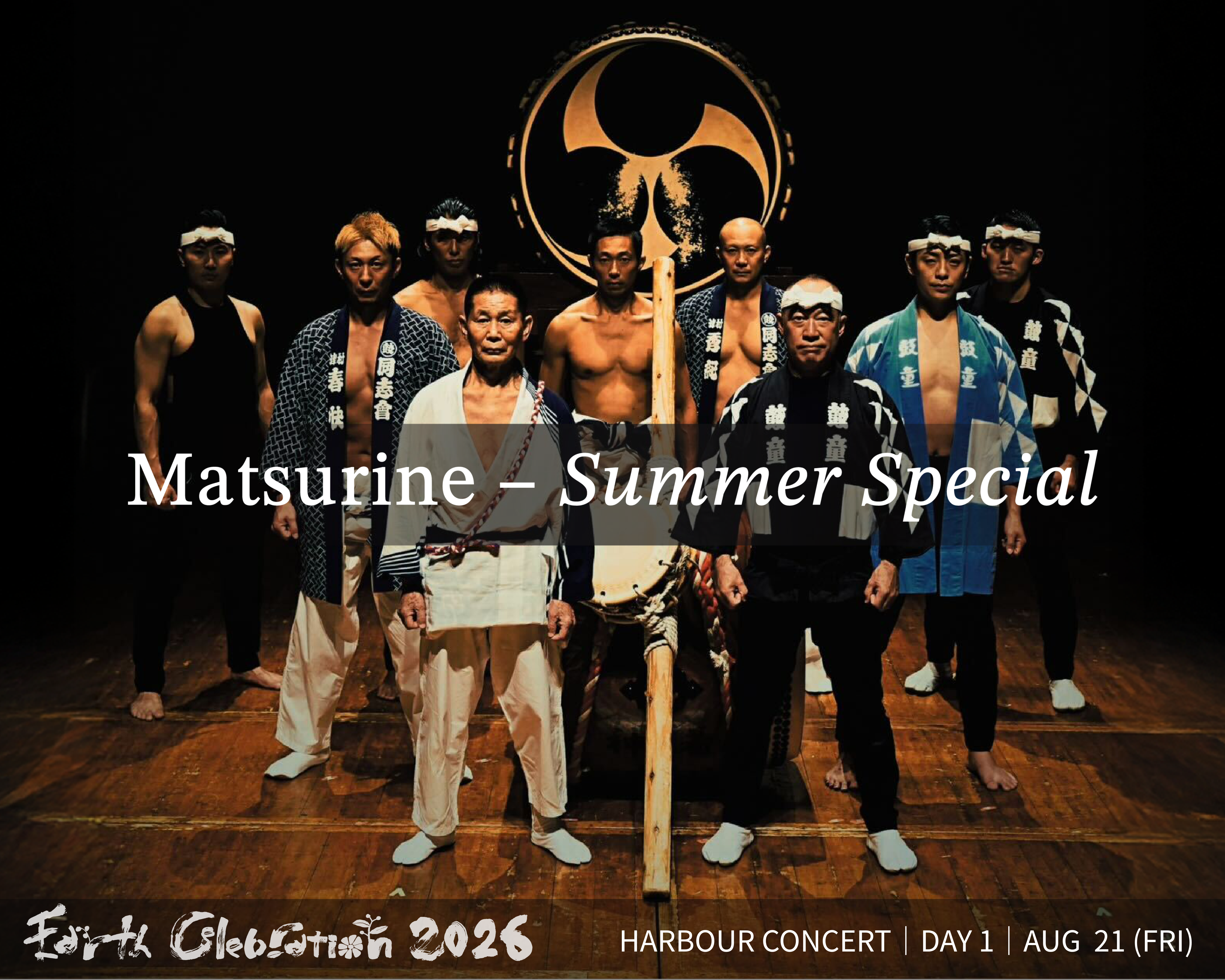 "Miyake-jima Geino Doshi-kai and Kodo first gave a Matsurine (Festival Sound) performance together 15 years ago, which has evolved into a force-of-nature series over the years. We are thrilled to finally bring this collaborative work to the EC main stage! While honoring our traditional roots, we’ll showcase the distinct artistry, movement, and staging of Doshikai and Kodo today—colliding head-on to create a fantastic, celebratory world for one night only. When we hear the word matsuri (festival), we can't sit still. It’s time for us to make some noise! Our motto for tonight’s big bash is "Happy Summer Don Don!" Let’s get loud!"