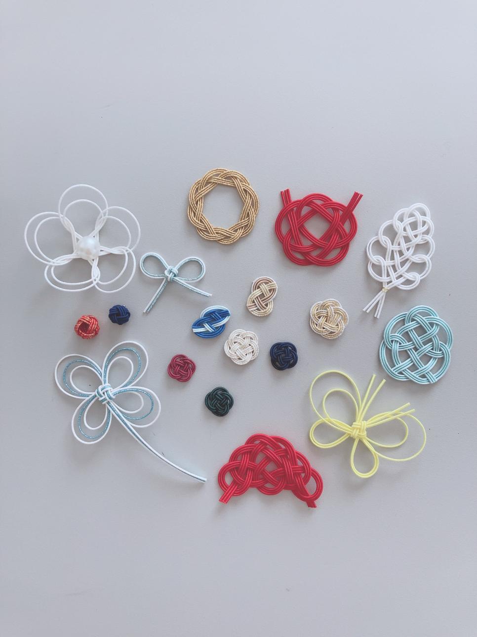 10:00 / 13:00 受付(~5分) ・自己紹介(5分) ・水引の説明・色選び・デザイン選び(10~20分) ・水引の歴史や意味 ・作品サンプル紹介 ・色・デザインを選ぶ 10:40 / 13:40 製作スタート(30~60分) ・アクセサリー仕立て(10~20分) 12:00 / 15:00 終了・解散