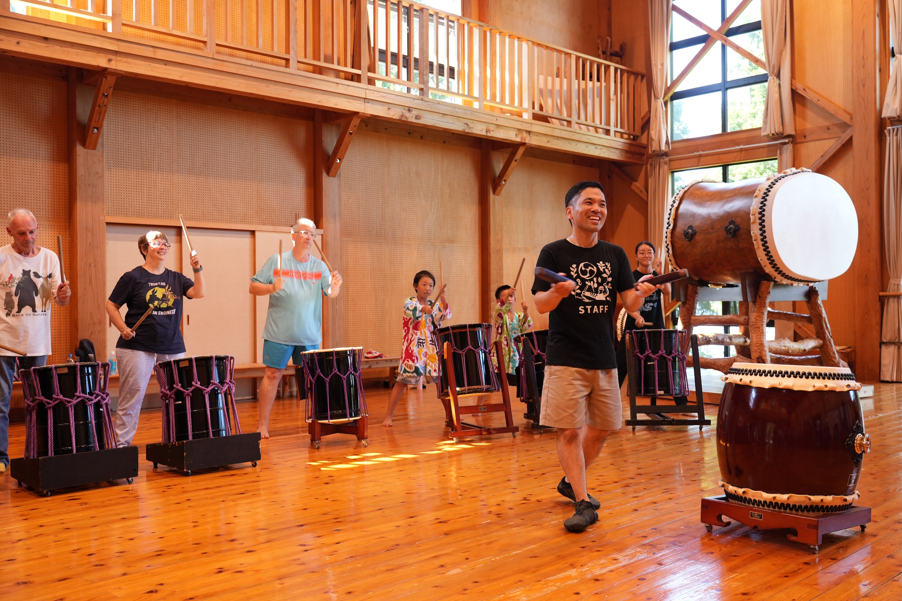 コンサートを観るだけじゃ、もったいない! 今度はあなたが太鼓を叩いてみませんか? 1回15分だから、子どもも大人も、はじめてでも大丈夫。 まずは気軽に、太鼓にふれてみよう! 観るから、叩くへ。 太鼓を叩けば、アース・セレブレーションはもっとおもしろくなる!