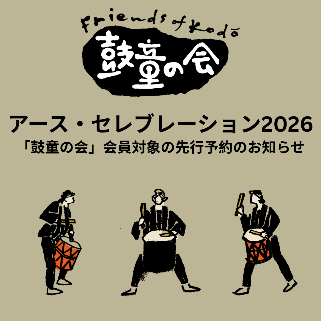 一般発売に先駆けて「鼓童の会」会員対象の先行予約を行います。 先行予約受付期間:4月24日(金)~4月27日(月) 先行予約は「鼓童の会」会員の特典で、アース・セレブレーションのイベントも対象公演・企画となります この機会に、ぜひ入会をご検討ください。 ※「鼓童の会」のサービスは日本語のみのご提供となります。あらかじめご了承ください。 「鼓童の会」について ご入会手続き、チケットご予約のいずれも「鼓童チケット予約サイト」からどうぞ。